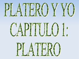 Platero es un burro suave y peludo que le gusta comer frutas como naranjas, uvas y higos. Aunque es tierno y cariñoso como un niño, también es fuerte y resistente como una piedra, con ojos negros como escarabajos y un carácter de acero y plata.
