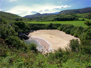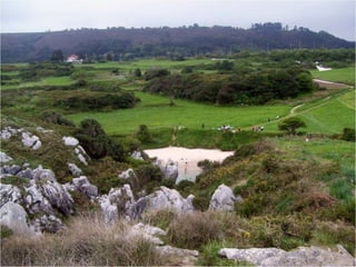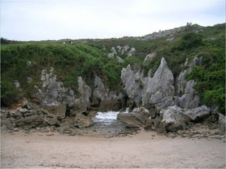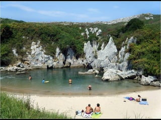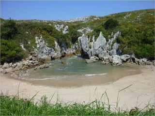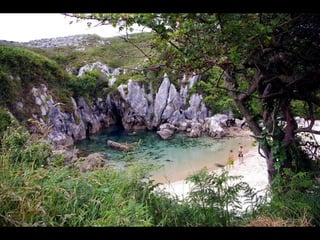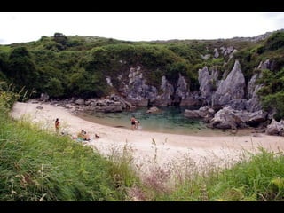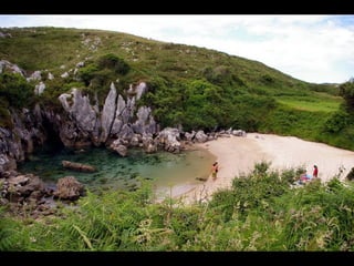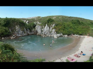 La playa de Gulpiyuri es una pequeña cala protegida por grandes formaciones rocosas, a unos 100 metros tierra adentro de la costa cantábrica. De forma ovalada y diminuta, está unida al mar abierto por una caverna sometida a las mareas, lo que hace que en ocasiones sea sólo un arenal y en otras, con la pleamar, se convierta en una piscina natural de exótica belleza.
