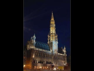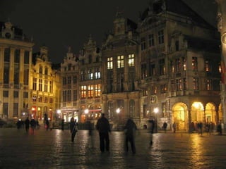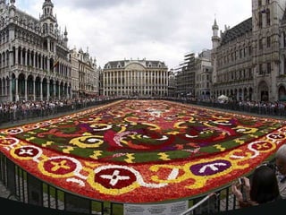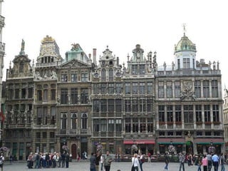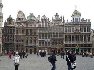 La Grand Place de Bruselas es la plaza central de la ciudad, conocida por su riqueza ornamental. Está rodeada por las casas de las corporaciones, el Ayuntamiento y la Casa del Rey. Fue destruida en gran parte por un bombardeo francés en 1695 y luego reconstruida en piedra. Actualmente alberga eventos culturales y es considerada uno de los lugares más bellos del mundo, siendo declarada patrimonio de la humanidad por la UNESCO en 1998.