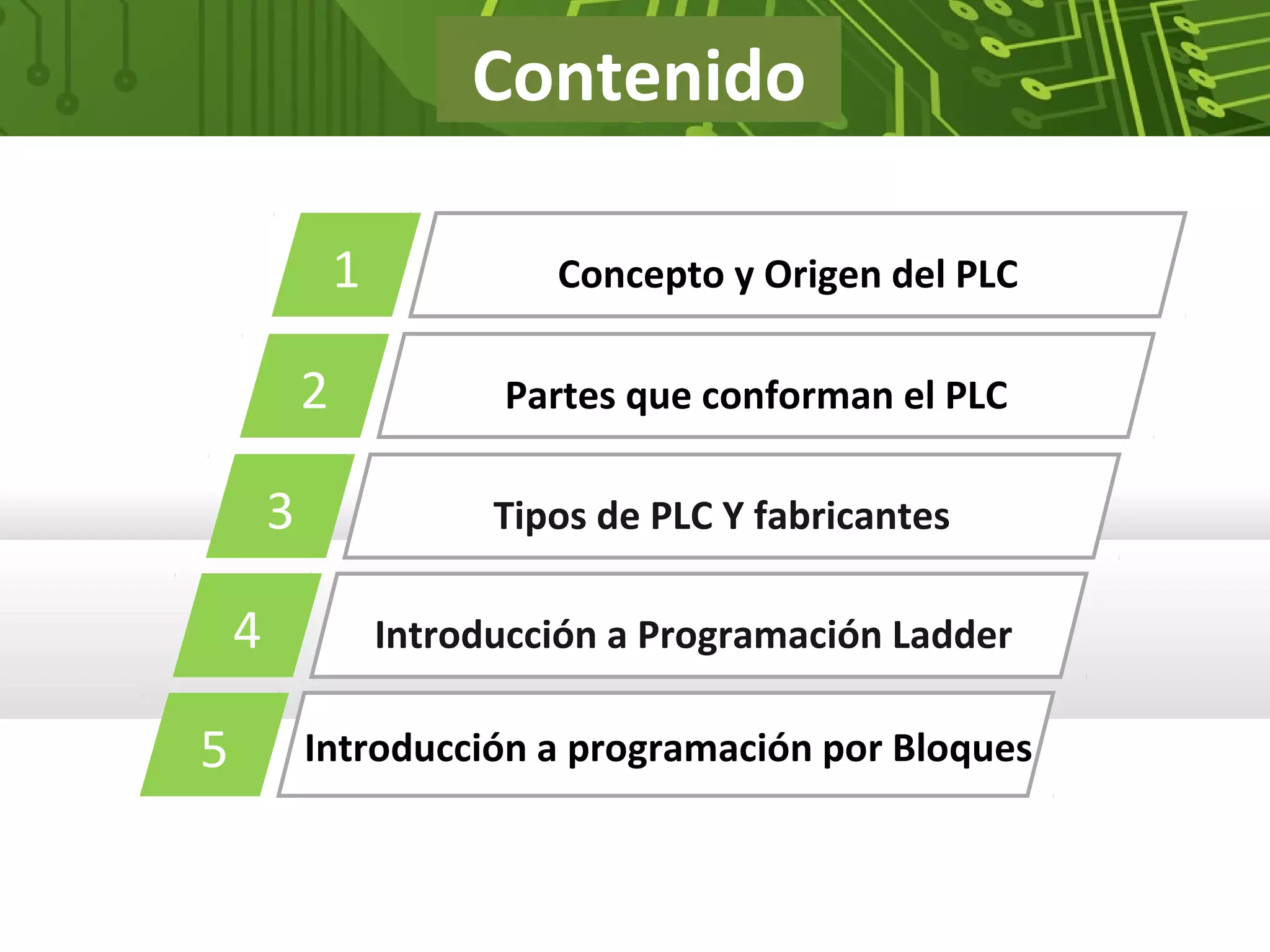 Este documento proporciona una introducción a los controladores lógicos programables (PLC), incluido su concepto, orígenes y partes principales. Explica que los PLC se utilizan para automatizar procesos electromecánicos mediante la programación de una lógica definida y cubre los tipos básicos de PLC, fabricantes y dos métodos comunes de programación: lenguaje de escalera y diagramas de bloques.