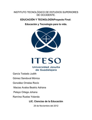 Este documento presenta una propuesta de taller de educación y tecnología para la vida dirigido a profesores. El taller busca que los profesores creen su propio entorno personal de aprendizaje utilizando herramientas tecnológicas como blogs, bibliotecas virtuales y redes sociales. El taller tendrá una duración de cuatro meses con sesiones presenciales y trabajo virtual. Al final, los profesores presentarán una reflexión sobre su proceso de aprendizaje y cómo aplicarán la tecnología en su práctica doc