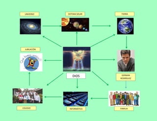 El documento habla sobre el universo, el sistema solar, la tierra, una persona llamada German Rodríguez y su familia, informática, colegio y jubilación, y Dios.
