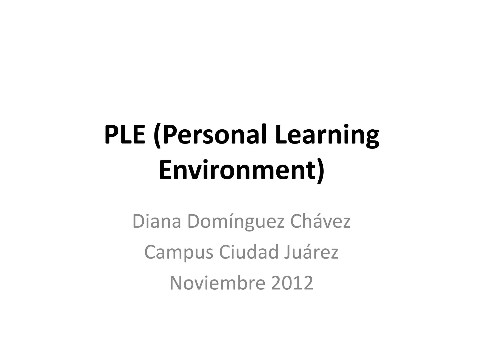 El documento describe un PLE (Personal Learning Environment), que es un sistema que ayuda a los estudiantes a gestionar su propio aprendizaje al almacenar y administrar recursos educativos en dispositivos tecnológicos. Un PLE cambia el aprendizaje de "empujar" conocimiento a los estudiantes a uno de "jalar" conocimiento según sus propias necesidades e intereses. Los profesores también pueden innovar e integrar nuevas herramientas en los PLE de los estudiantes.