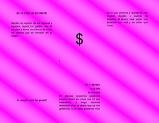 Gastar más de lo que se tiene es malo y se recomienda mantener un registro de ingresos y egresos para tomar decisiones financieras adecuadas. También es importante no gastar dinero en cosas innecesarias que luego se puedan necesitar, y evitar endeudarse gastando más de lo que se tiene para no terminar sintiéndose mal.