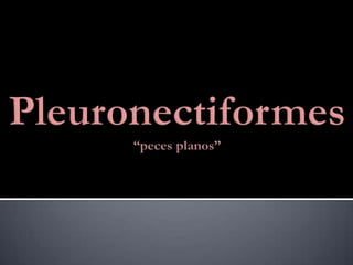 1. Las larvas de los peces planos experimentan una metamorfosis completa que los transforma de simétricos a asimétricos, adaptándolos a su hábitat bentónico y comportamiento de adultos. 2. Existen 14 familias de peces planos con variaciones en sus características morfológicas y de distribución. 3. Factores ambientales como la calidad del agua, oxígeno, alimentación y parámetros físico-químicos son importantes en las distintas etapas de desarrollo de los peces planos.