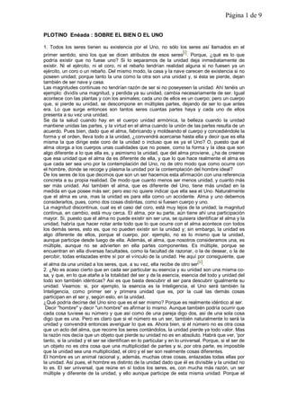 Plotino sostiene que todos los seres existen gracias a la unidad, el 'uno', que es la esencia de la existencia misma. La relación entre el alma, la unidad y el ser es compleja, ya que el alma proporciona unidad a los cuerpos y partes, pero no se identifica con la unidad misma. Además, el 'uno' se describe como una realidad superior y primordial que es simple y carece de forma, en contraste con las multiplicidades de la existencia tangible.