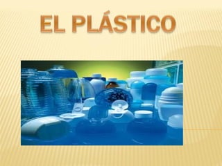 El documento resume brevemente la historia y uso del plástico. Explica que el plástico se origina a partir de recursos naturales como el petróleo y se obtiene mediante un proceso de polimerización. También describe cómo se fabrican objetos de plástico utilizando máquinas de inyección y cómo el plástico se ha convertido en uno de los materiales más utilizados, especialmente para la fabricación de envases.