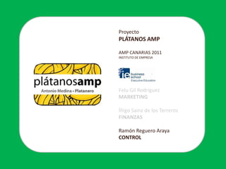 El documento presenta el plan estratégico de la empresa Plátanos AMP para los próximos años. El plan se centra en expandirse al mercado ecológico del norte de Europa posicionándose como referente en la calidad de sus plátanos ecológicos. La estrategia incluye mejorar la eficiencia operativa, aumentar la rentabilidad, fidelizar clientes y explorar nuevos mercados de manera flexible para adaptarse a los cambios del sector.