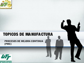 El documento describe los procesos de mejora continua (PMC) como un conjunto de actividades orientadas a mejorar la calidad, eficiencia y competitividad de una organización. Explica que PMC utiliza seis pilares como mantenimiento productivo total, SMED, Kanban, Jidoka, Just in Time y Poka-Yoke para lograr la mejora. Finalmente, enfatiza que la mejora continua requiere el apoyo de la gerencia, retroalimentación en cada proceso, y mediciones claras de los resultados para ser sostenible.