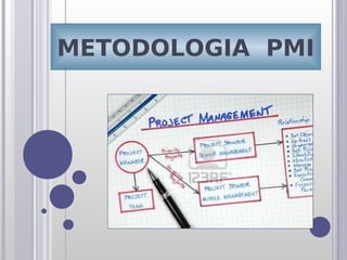 El documento describe la metodología PMI (Project Management Institute) para la gestión de proyectos. PMI es una organización internacional que establece estándares y ofrece certificaciones en gestión de proyectos. El documento explica la historia de PMI, la estructura del Guía del PMBOK con sus 9 áreas de conocimiento y 44 procesos agrupados, y las fortalezas de seguir una metodología estandarizada para la gestión exitosa de proyectos.