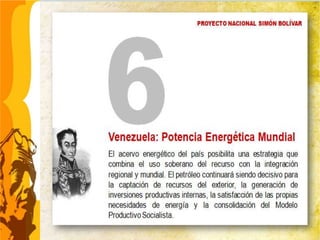El documento presenta el Primer Plan Socialista de la Nación de Venezuela para el período 2007-2013, el cual se orienta hacia la construcción del socialismo del siglo XXI a través de siete líneas estratégicas. El plan busca profundizar los logros alcanzados en el período 2001-2007 y establecer las bases para la transición hacia una nueva organización socio-territorial coherente con el nuevo socialismo.