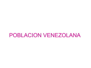 La población de Venezuela ha crecido rápidamente en las últimas décadas, pasando de 5 millones en 1950 a más de 23 millones en 2000. Más del 64% de los venezolanos tienen menos de 30 años, lo que indica una pirámide poblacional ancha en la base. Las mujeres representan el 50.2% de la población total y la mayoría de los inmigrantes provienen de Colombia, Portugal, Perú e Italia.