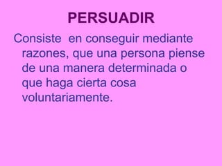 Persuadir a alguien requiere ganar su confianza mediante temas en común y una estructura de argumentos que presente pros y contras de una manera razonable, única, interesante y modesta.