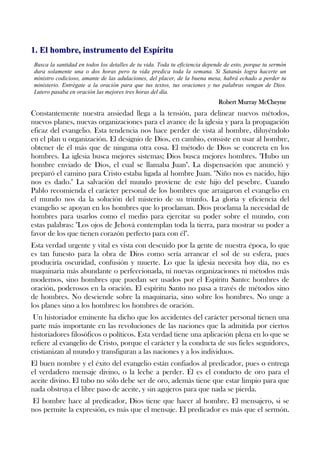 El documento enfatiza que los verdaderos predicadores son hombres de oración, moldeados por la oración secreta. La oración es la fuerza más poderosa de un predicador y da vida a sus sermones y ministerio. Sin la oración, un predicador es incompetente y sus sermones carecen de poder y vida espiritual.