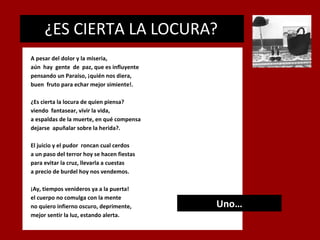 Este documento contiene 15 poemas de Berta González-Sugasaga. Los poemas tratan temas como la locura, la paz, la libertad, la ciencia, la muerte, Dios y la condición humana. Exploran conceptos filosóficos y existenciales de una manera lírica y a veces crítica.