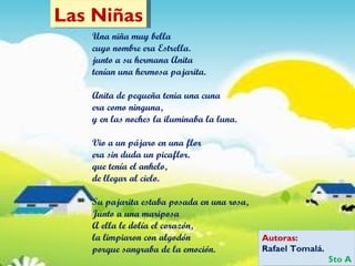 El documento contiene varios poemas cortos escritos por estudiantes de quinto grado sobre temas como la amistad, la naturaleza, la paz y el rechazo al terrorismo. Los poemas describen cosas como una niña y su amiga, una mariposa, flores y plantas. Varios poemas expresan el deseo de los niños por vivir en un mundo pacífico sin violencia.