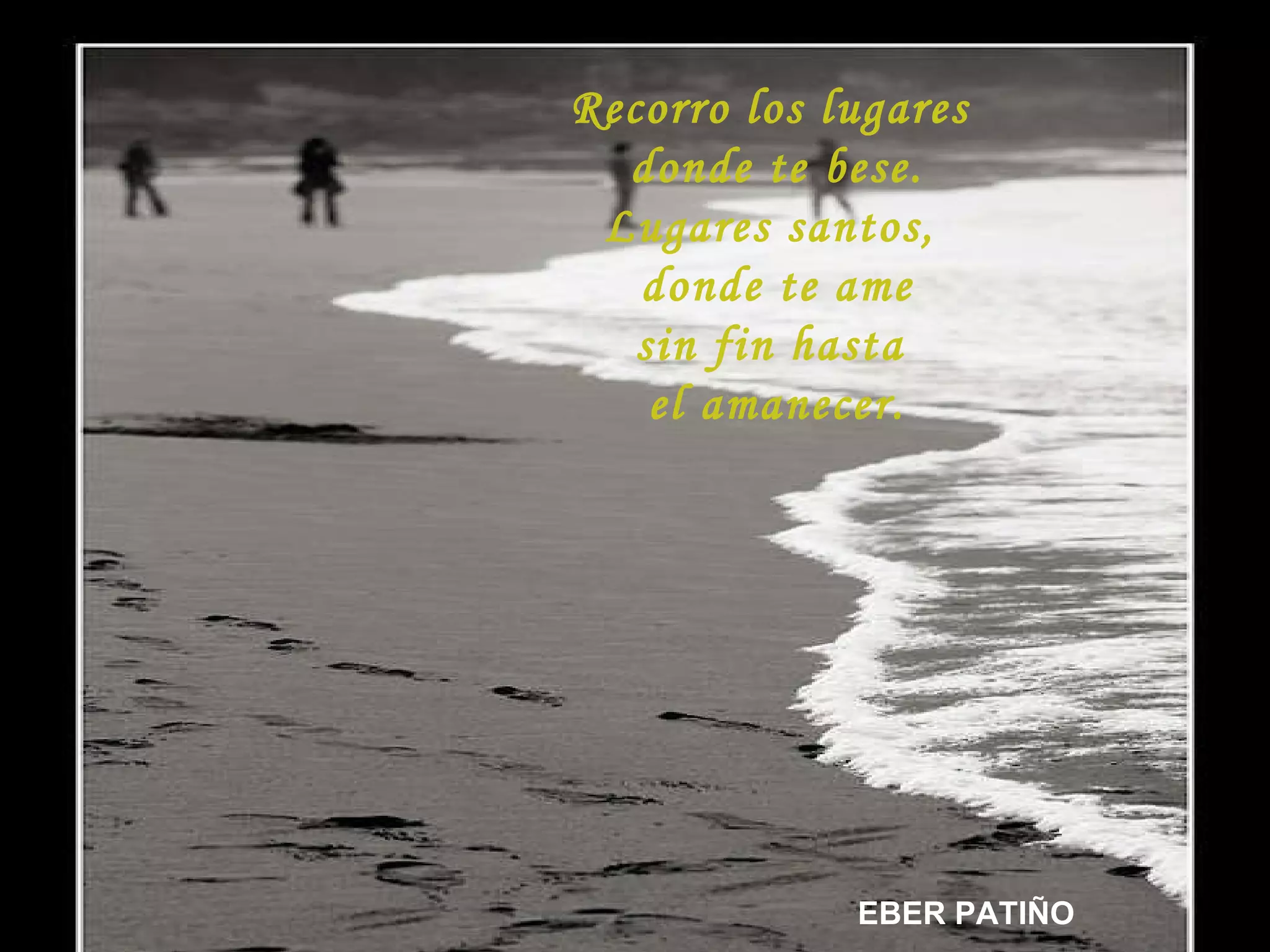 El documento contiene varios poemas de Eber Patiño sobre el amor y las emociones que este genera. Describe los recuerdos de momentos íntimos compartidos, la capacidad del amor de llenar el alma y calmar la angustia, y la forma en que el amor puede hacer que las distancias, razas y religiones parezcan insignificantes.