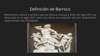 El documento describe el contexto histórico y literario de la poesía barroca en España. En el siglo XVII, el país experimentó una crisis política, económica y social debido a las guerras, epidemias y malos gobernantes. Esto llevó a un clima de decadencia y pesimismo. La poesía barroca reflejó esta actitud desengañada a través de temas como el paso del tiempo, la muerte y la falsedad de las apariencias. Los poetas buscaron la genialidad mediante textos complicados que represent