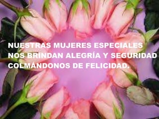 El documento celebra a las mujeres por brindar alegría, seguridad, cuidado y respeto, y por colmar de felicidad a quienes las quieren. Representan la esperanza, la tranquilidad y la libertad, según los colores amarillo, azul y blanco.