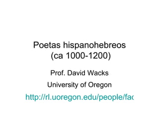 Este documento habla sobre poetas hispanohebreos que escribieron entre los años 1000-1200 d.C. en la península ibérica. Estos poetas eran judíos educados que participaban en la cultura árabe de Al-Andalus mientras practicaban su fe judía. Escribían poesía híbrida usando el lenguaje hebreo bíblico pero con temas, formas y convenciones de la poesía árabe clásica. Inventaron formas poéticas nuevas como la muwashshah y la jarcha,
