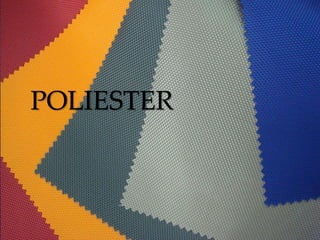 El poliéster es un tipo de plástico sintético formado por la polimerización del ácido tereftálico y el etilenglicol. El poliéster más común es el PET, que se usa para fabricar botellas de plástico y fibras textiles. Los poliésteres tienen grupos éster en su cadena principal que les dan propiedades polares y resistencia. Se usan comúnmente para fabricar fibras, recubrimientos, botellas y más.