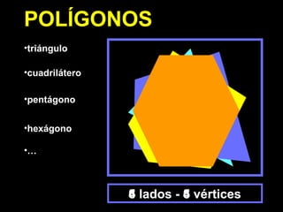 El documento describe diferentes tipos de polígonos y cuadriláteros. Define polígonos convexos y cóncavos, y describe triángulos según la medida de sus lados y ángulos. Luego detalla los elementos del triángulo como bisectrices, mediatrices, medianas y alturas. Finalmente, define diferentes tipos de cuadriláteros como cuadrado, rectángulo, rombo, romboide, trapecio e isósceles y trapezoide.