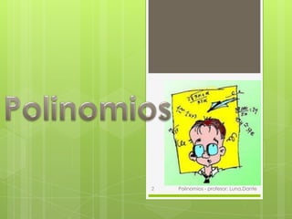 Este documento presenta conceptos sobre polinomios y cómo realizar operaciones de suma y resta con ellos. Introduce polinomios, términos, coeficientes y grados de polinomios. Explica cómo sumar polinomios agrupando términos del mismo grado y cómo restar polinomios sumando el opuesto del sustraendo. El objetivo es que los estudiantes aprendan a realizar operaciones básicas con polinomios.
