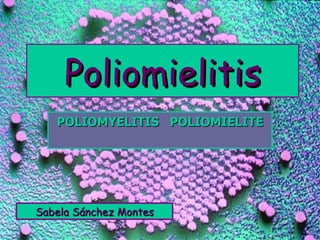 La poliomielitis es una enfermedad infecciosa causada por un virus que puede causar parálisis o incluso la muerte al destruir el sistema nervioso, y se transmite principalmente a través del agua o los alimentos contaminados. Los síntomas más comunes son fiebre, dolor de garganta y estómago. Afecta principalmente a niños menores de 3 años en países con bajas tasas de vacunación e higiene como India, Nigeria y Pakistán. En España es casi inexistente debido al acceso a la vacuna.