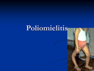 La poliomielitis es una enfermedad altamente contagiosa causada por el virus de la poliomielitis, que puede provocar parálisis en aproximadamente el 1% de los casos, mientras que la mayoría presenta síntomas infecciosos. La erradicación de la poliomielitis en América fue certificada en 1994, y la transmisión ocurre de persona a persona a través de la vía bucofaringea. Aunque existen vacunas efectivas, el diagnóstico y tratamiento posterior a la enfermedad se centran en medidas de apoyo y rehabilitación.