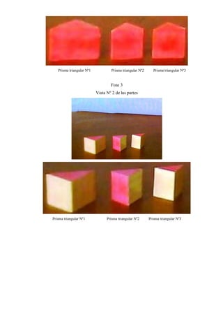 El documento describe el Poliprisma 3.0, un rompecabezas tridimensional bicolor de 3 elementos. Consta de tres prismas triangulares pintados estratégicamente que deben ensamblarse de forma que cumplan condiciones como tener caras opuestas de colores diferentes o tener la mitad de un color y la otra mitad del otro color.