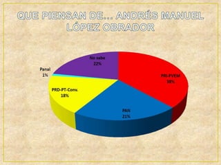 El documento analiza las elecciones presidenciales de México en 2012, presentando a los candidatos principales y sus propuestas sociales. Incluye opiniones públicas, así como un enfoque en temas clave como educación, economía, empleo, y corrupción. Además, se citan diversas fuentes y biografías para proporcionar un contexto más profundo sobre los candidatos y sus estrategias políticas.