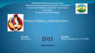 El documento establece el marco político y los beneficios del uso de software libre en Venezuela, resaltando su importancia en la administración pública y su papel en la soberanía tecnológica. Promueve la formación en software libre y su adopción como estándar en diferentes sectores, con el objetivo de reducir costos y fomentar la industria nacional. Asimismo, se menciona un decreto que prioriza el uso de software libre y la implementación de estándares abiertos en los sistemas de información del estado.