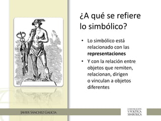 El documento describe los conceptos de lo simbólico, la representación simbólica y la política simbólica. Explica que lo simbólico se refiere a las representaciones y la relación entre objetos que remiten a otros objetos. Identifica tres formas de representación simbólica: la imagen, el signo y el símbolo. También describe tres modelos de comunicación política: el dialógico, el propagandista y el de marketing político. Finalmente, enfatiza que lo más importante en la comunicación política es la forma en que se elabora y