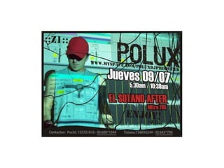 Polux es un DJ y productor musical español que fue entrevistado en el programa Weekend Club Radio. En la entrevista, Polux habló sobre su carrera como DJ y productor, incluyendo sus inicios en la escena electrónica española y sus próximos proyectos y lanzamientos musicales. También compartió consejos para los aspirantes a DJ.