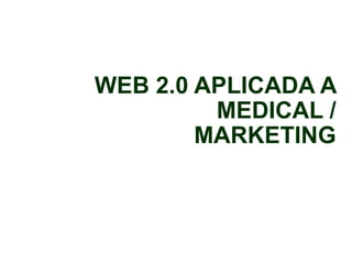 El documento habla sobre cómo las compañías médicas pueden usar las herramientas de la Web 2.0 y las plataformas de centralización digital para lograr sus objetivos de marketing y ventas de manera más eficiente y eficaz. Las plataformas digitales permiten ofrecer servicios exclusivos a los clientes, fidelizar a los facultativos, y realizar acciones de marketing directo como boletines informativos para aprovechar las oportunidades que brinda la Web 2.0 como el cloud computing y las comunidades clínicas de investigación.