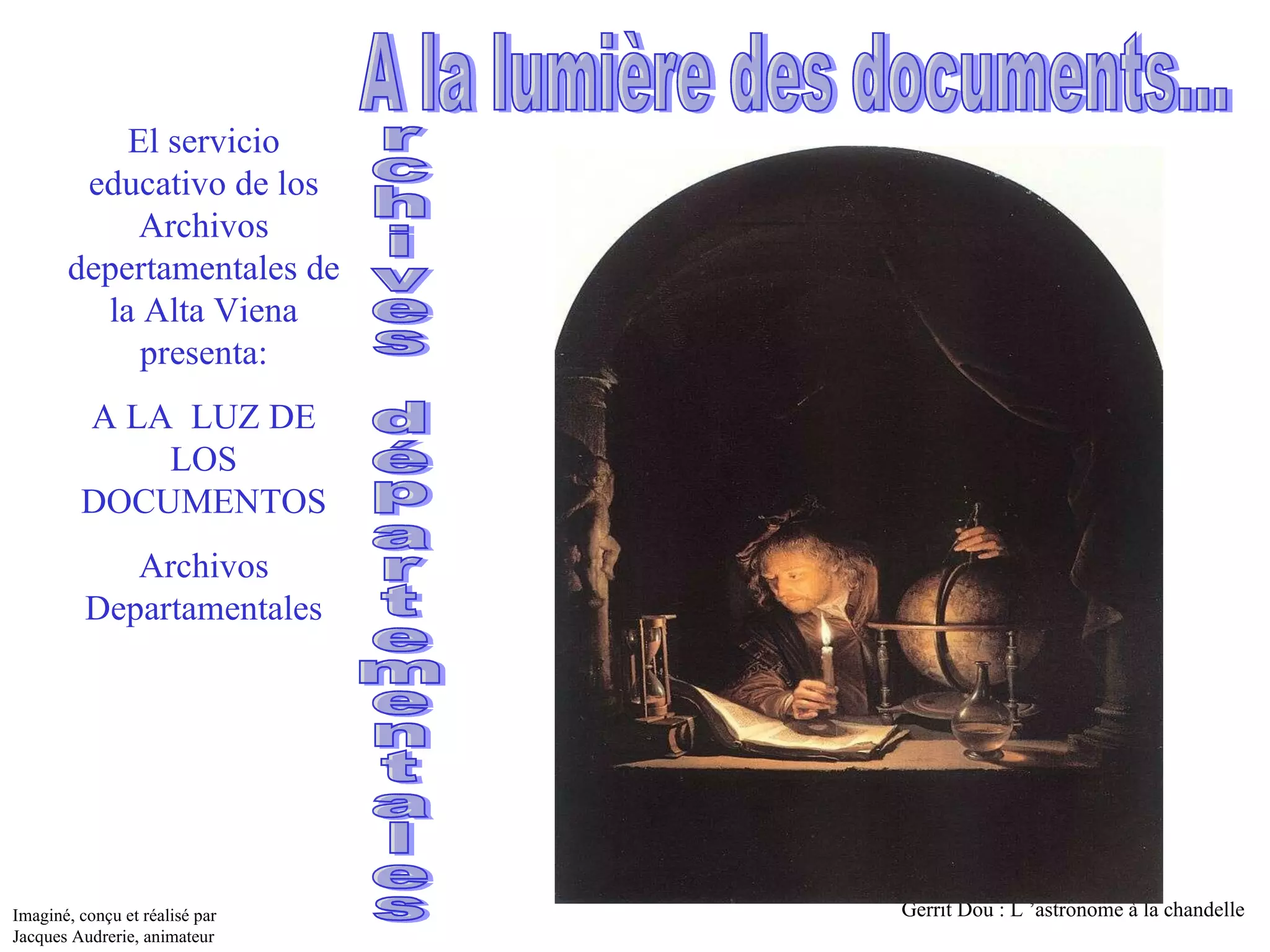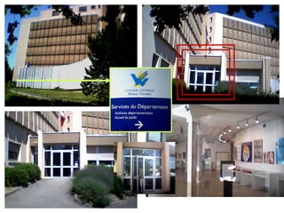 El documento proporciona información sobre los Archivos Departamentales de la Alta Viena en Francia. Explica que los archivos se encargan de reunir, conservar y poner a disposición del público los documentos del departamento. También describe los procesos de clasificación, comunicación, conservación y uso de los archivos, así como los posibles riesgos para la conservación de los documentos y las medidas para preservarlos.