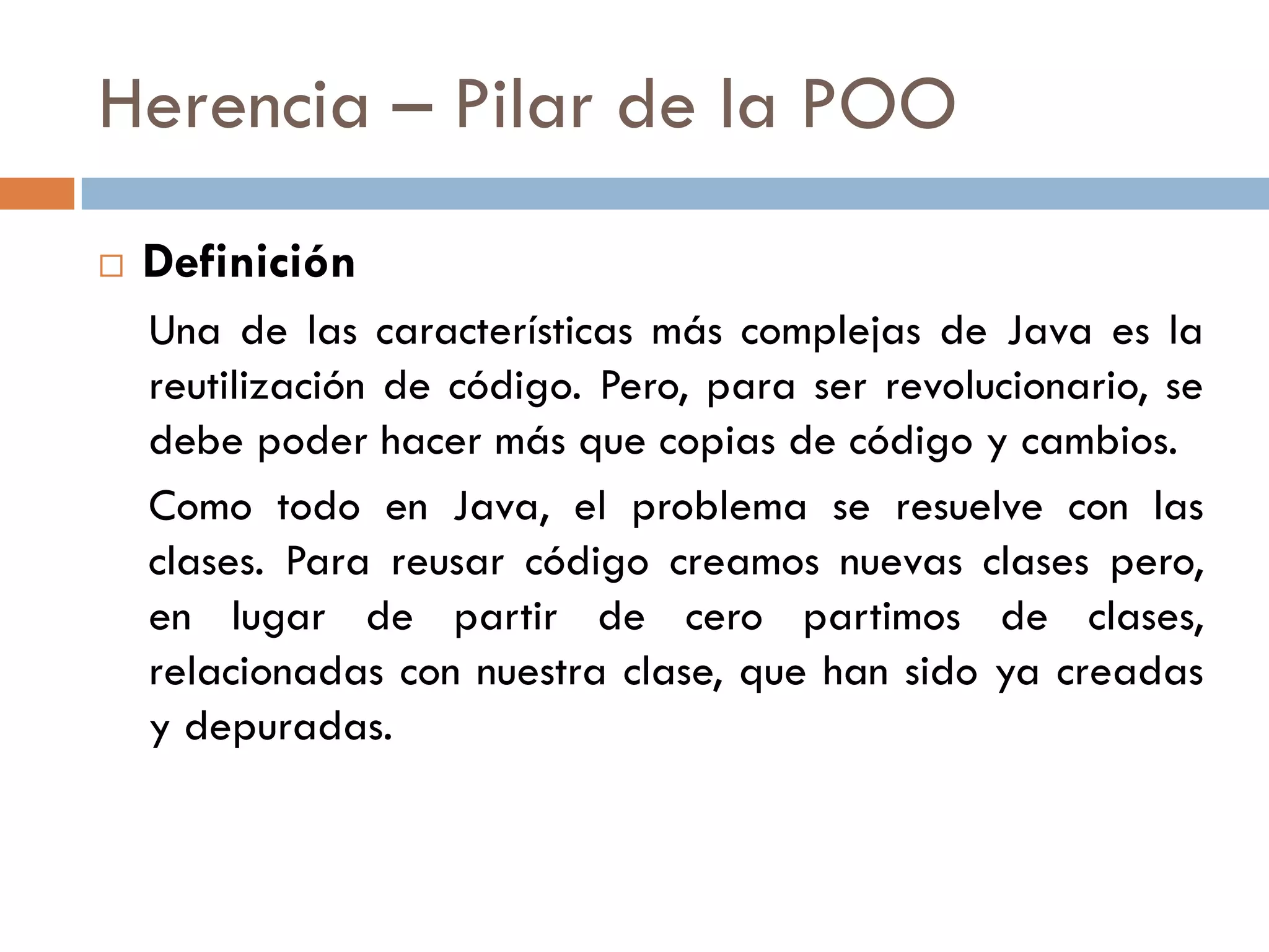 El documento explica la herencia en programación orientada a objetos. Define la herencia como un mecanismo que permite definir una clase a partir de otra existente, compartiendo métodos y datos automáticamente. Explica los tipos de herencia simple y múltiple, y provee un ejemplo de herencia simple entre clases Futbolista, Entrenador y Masajista que heredan de una clase padre SelecciónFutbol.