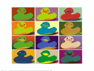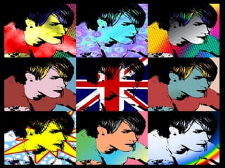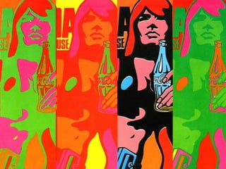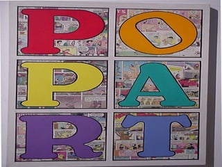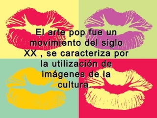 El documento describe el movimiento artístico del arte pop del siglo XX. Se originó a finales de los años 1950 y se caracterizó por utilizar imágenes de la cultura popular y de la sociedad de consumo. Tuvo diferentes fases y se desarrolló en Estados Unidos, Europa e Italia e incluyó artistas importantes como Andy Warhol, Roy Lichtenstein, David Hockney y George Segal, quienes utilizaron técnicas como la serigrafía y materiales de la cultura de masas para criticar e ironizar sobre la sociedad.