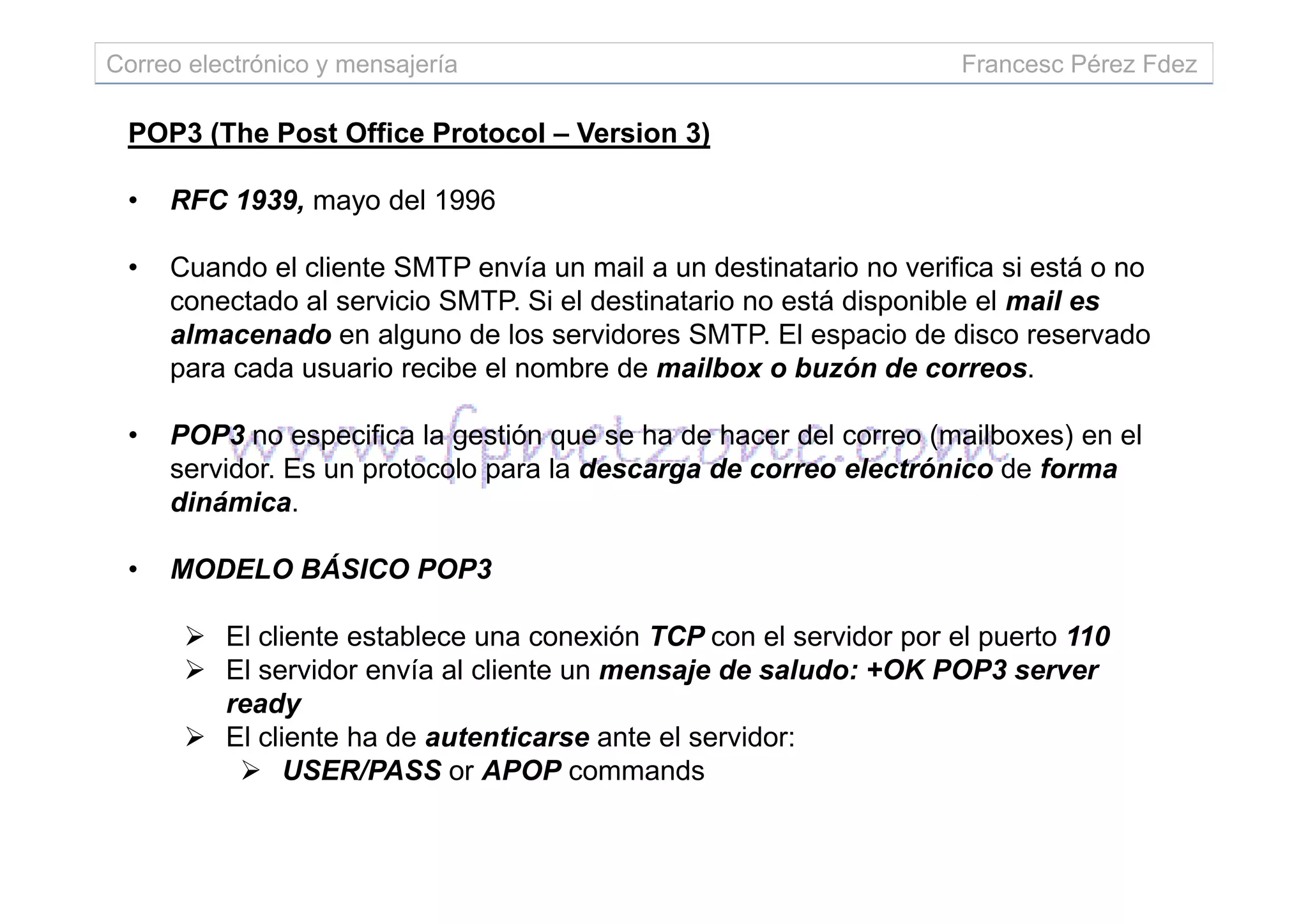 POP3 es un protocolo para la descarga dinámica de correo electrónico desde un servidor a un cliente, mientras que IMAP permite acceder y manipular mensajes de correo en el servidor y resincronizar el cliente cuando está desconectado. IMAP almacena atributos como identificadores únicos y marcas para cada mensaje, y permite crear, borrar y renombrar carpetas, mientras que POP3 solo descarga los mensajes.