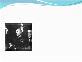 El documento describe el populismo en América Latina, con un enfoque en Argentina y Brasil. Explica que el populismo surgió como una reacción contra las élites tradicionales y los partidos políticos existentes, y se caracteriza por el apoyo de las masas populares a líderes carismáticos. En Argentina, el peronismo encabezado por Juan Perón y Eva Perón se basó en políticas sociales, nacionalismo económico y el fortalecimiento del Estado para ganar el apoyo de los trabajadores. En Brasil, Getulio