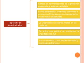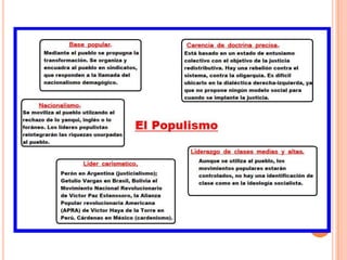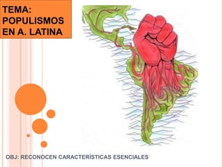 Las dictaduras militares en América Latina entre 1964 y 1984 se caracterizaron por (1) responder a períodos de agitación política y crisis económica, (2) contar con apoyo de Estados Unidos y grupos económicos dominantes, (3) ejercer el gobierno mediante equipos técnicos civiles, y (4) perseguir a la oposición, especialmente de izquierda, con violaciones a los derechos humanos. La Operación Cóndor fue una acción articulada de inteligencia entre países del cono sur para perseguir y