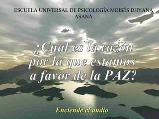 El documento pide la paz en el mundo a través de un correo electrónico que debe extenderse globalmente. Describe un mundo en guerra y de duelo, y exige que la paz prevalezca sobre todas las cosas. Pide que el correo sea traducido a todos los idiomas para que personas de todas las razas, colores, religiones y nacionalidades puedan participar en la petición por la paz.