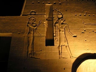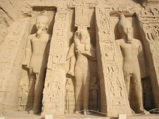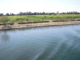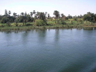 El documento resume los principales lugares históricos y religiosos que se pueden visitar a lo largo del río Nilo en Egipto, incluyendo templos antiguos, tumbas reales, pirámides y mezquitas en El Cairo.