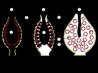 Este documento describe las características de las esponjas. Son organismos marinos y de agua dulce, la mayoría viven en aguas someras. Sus cuerpos están compuestos de tejido conjuntivo y tienen simetría radial u asimétrica, con poros y canales. Se reproducen sexualmente a través de la fecundación y forman larvas. Existen varias clases de esponjas que se diferencian por sus características celulares y esqueléticas.