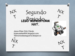 El documento habla brevemente sobre LEGO MINDSTORM NXT. Menciona el nombre de Jesús Elías Ortiz Clavijo y dos sitios web relacionados con el tema: ticjesuselias904.blogspot.com y Teknonicolasesguerra.blospot.com.