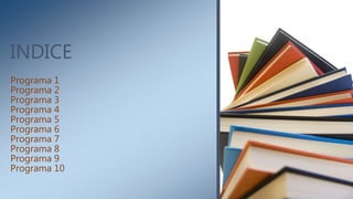 El documento presenta un índice de 10 programas desarrollados utilizando programación estructurada como parte de la especialidad de Desarrolla Software. Las autoras Diana Miramontes y Sinai Rosales concluyen que aprendieron sobre el funcionamiento de los programas con switch y if a través de la práctica, y que pudieron completar los programas trabajando en equipo e intercambiando ideas.