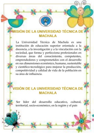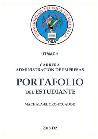 El documento proporciona información sobre el portafolio de una estudiante de la carrera de Administración de Empresas de la Universidad Técnica de Machala en Ecuador. Presenta datos personales de la estudiante, asignaturas cursadas, docentes, horarios y contenidos de la asignatura Herramientas Informáticas.