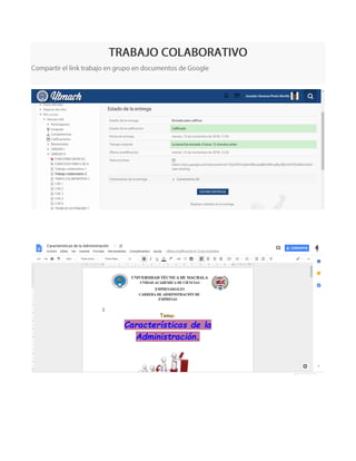 El documento presenta información sobre la Universidad Técnica de Machala y la carrera de Administración de Empresas. Incluye la misión y visión de la universidad y la carrera. Además, contiene el himno de la universidad y datos personales de una estudiante de la carrera de Administración de Empresas. Finalmente, presenta el syllabus de la asignatura Herramientas Informáticas I.