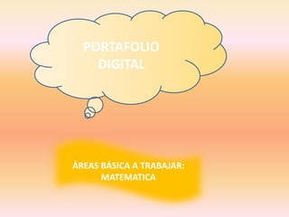 Este documento presenta un portafolio digital para mejorar el rendimiento académico de estudiantes en matemáticas a través de la integración de las TIC en la enseñanza. Los estudiantes tienen dificultades con problemas matemáticos básicos. El objetivo general es promover el uso de herramientas tecnológicas y materiales lúdicos. Los objetivos específicos incluyen incrementar la motivación de los estudiantes, desarrollar hábitos de lectura, vincular situaciones cotidianas a las matem