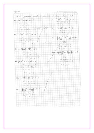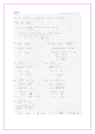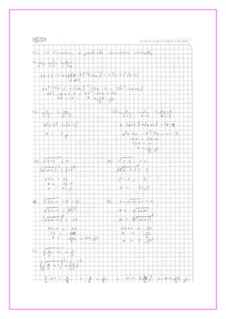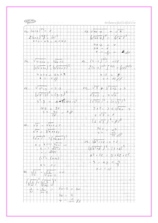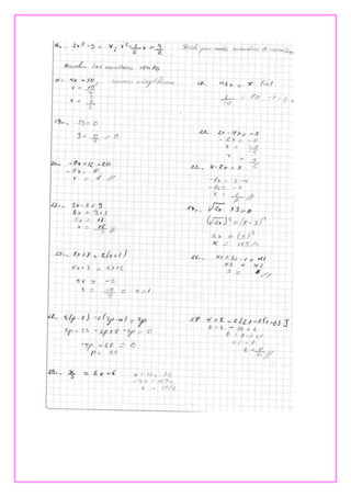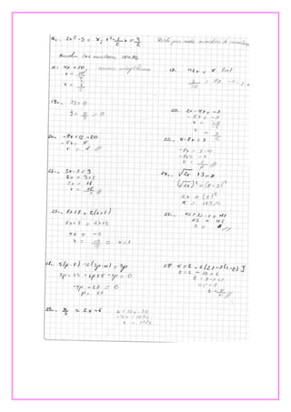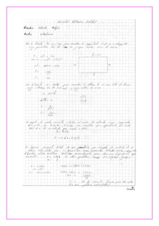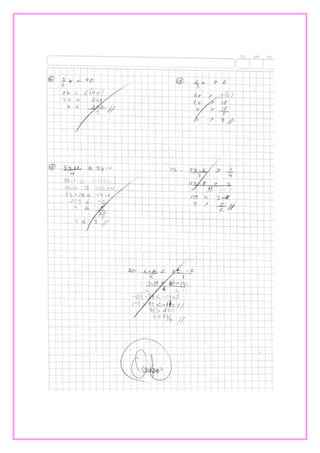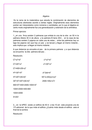 Este documento presenta tres ejercicios de álgebra. El primero involucra el Teorema de Pitágoras para calcular la distancia de dos palmeras a un pez. El segundo calcula la longitud de la sombra proyectada por un edificio. Y el tercero determina cuándo se volverán a encontrar dos estudiantes basado en la frecuencia con la que toman clases de inglés.